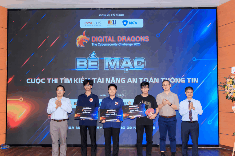 Ngày 20–21/09/2025, Vòng Chung kết “Digital Dragons: The Cybersecurity Challenge – DDC 2025” đã diễn ra tại Trường Đại học Công nghệ Thông tin và Truyền thông Việt – Hàn (VKU), Đà Nẵng. Cuộc thi và hội thảo chuyên đề an ninh mạng do VKU phối hợp cùng Evvo Labs tổ chức, với sự đồng hành của Hiệp hội An ninh mạng quốc gia (NCA).